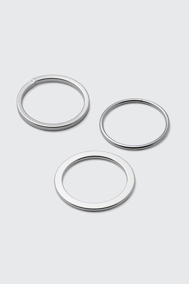 A 3-pack of minimal steel rings.