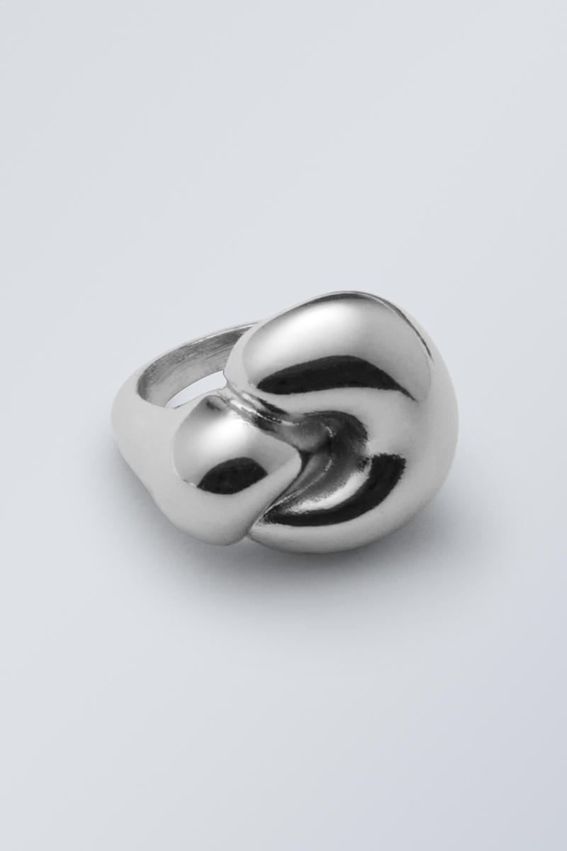 En kraftig ring med en rund, organisk form tillverkad av återvunnen zink.