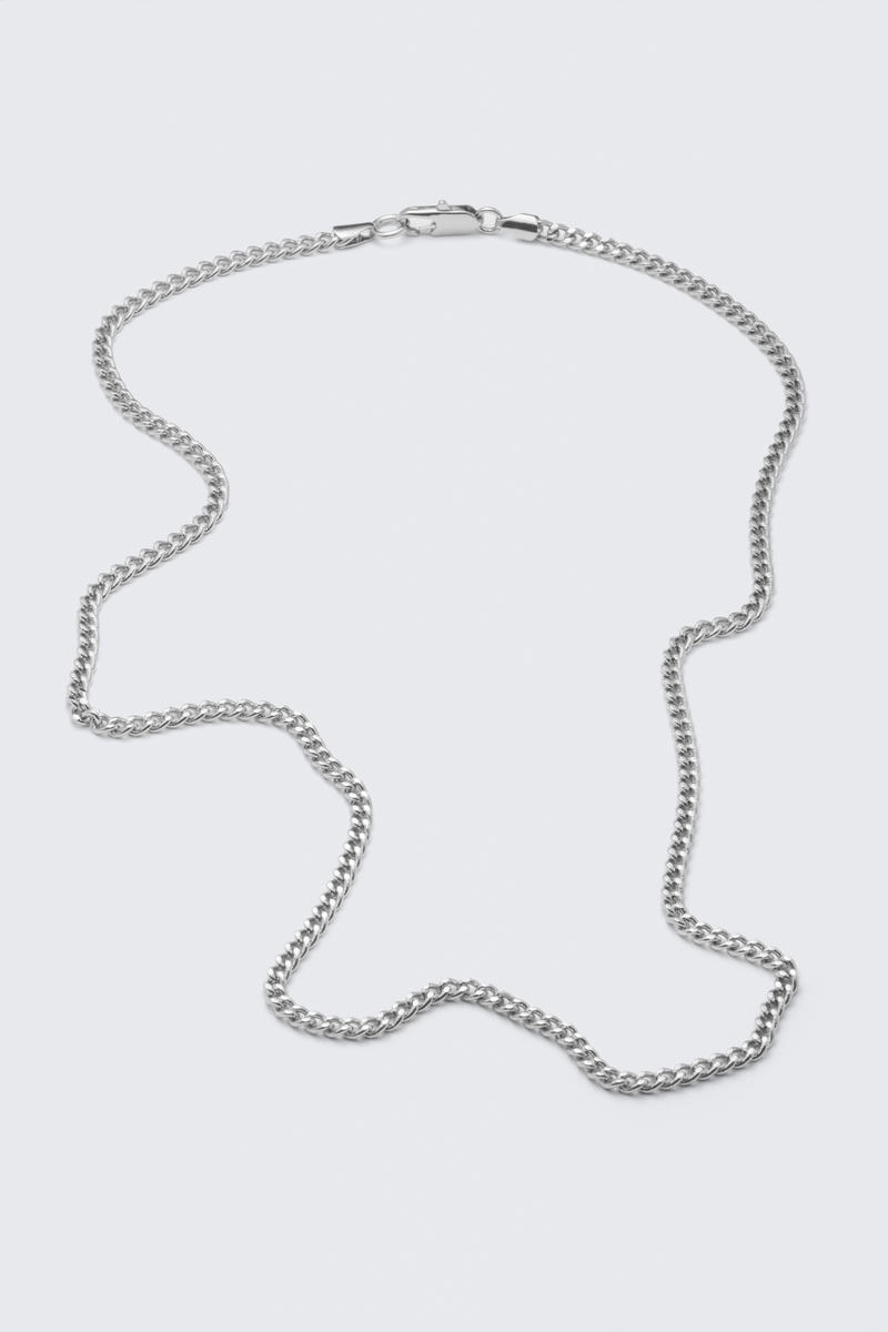 A classic chain necklace with a polished finish. Crafted from metal, it features a 4 mm wide curb chain and a secure lobster clasp. Designed to sit at the collarbone with a 58 cm circumference, it’s an effortless go-to for everyday layering or a subtle statement on its own.