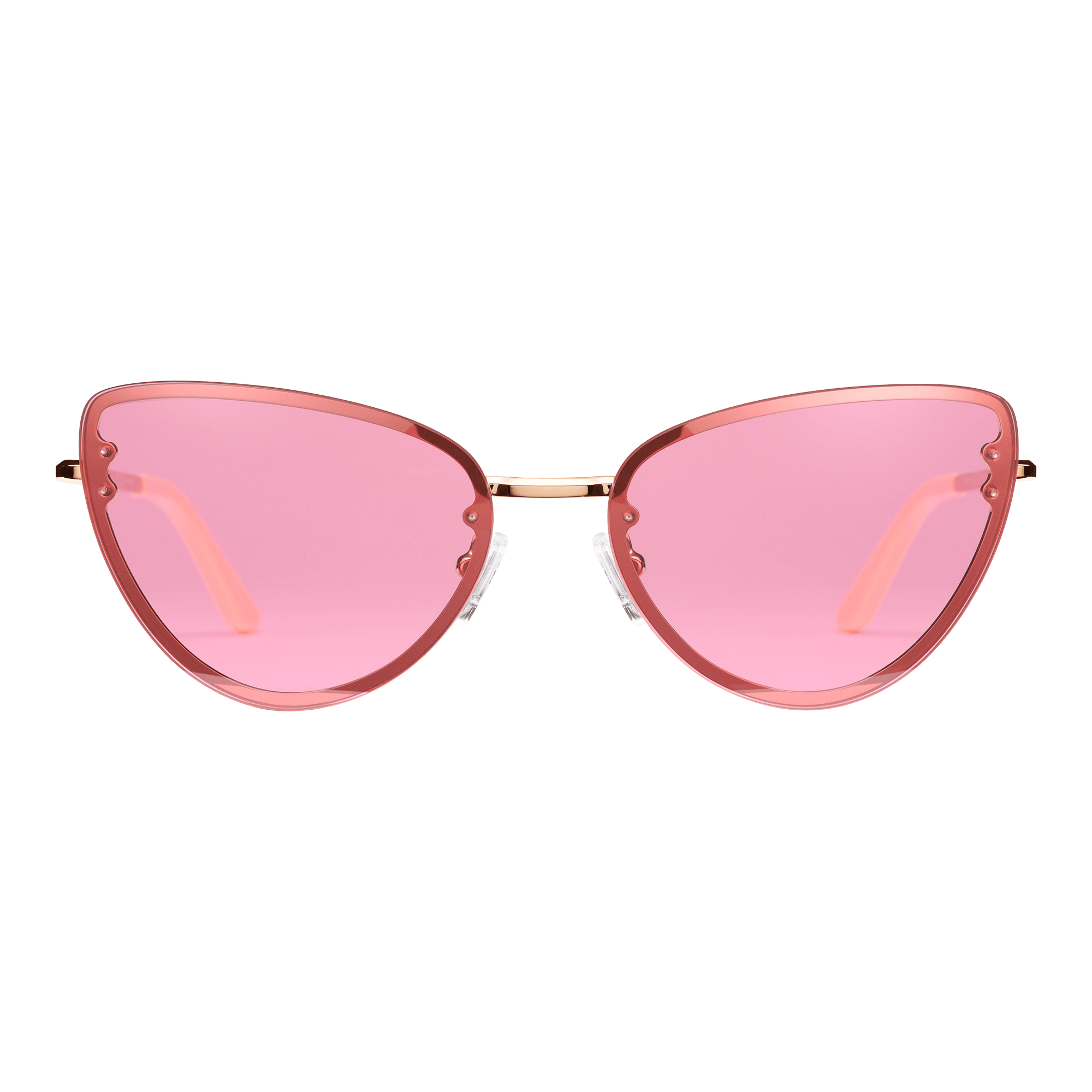 Lynx-solglasögonen ger en utmanande feminin touch till varje look. Handgjorda av rostfritt stål, pläterade med detaljer i roséguld och har eleganta rosa linser. Skalmspetsarna är av cellulosaacetat och de justerbara näskuddarna är av silikon för maximal komfort.