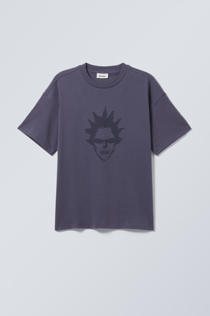 En löst sittande t-shirt gjord av ett mjukt bomullsgarn. Denna lagerfavorit har en boxig passform, omlottsömmar vid den rundade halsen, droppade axlar och dubbla sömmar i fållen.