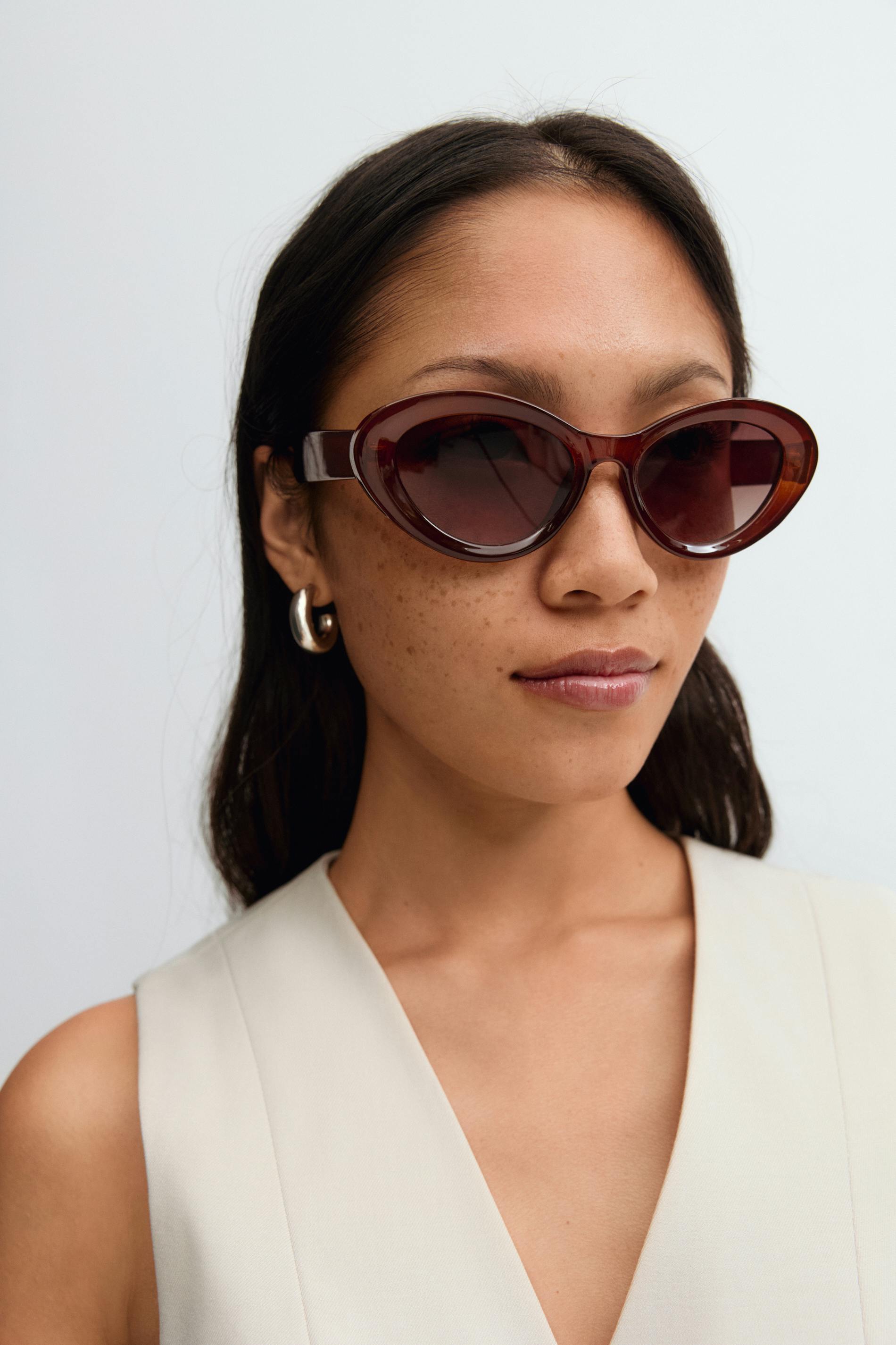 Gina Tricot – Oval cat eye sunglasses – Ovala solglasögon med cateye-design. Solglasögonen är bruna och har plastbågar. – Brun – Dam- new