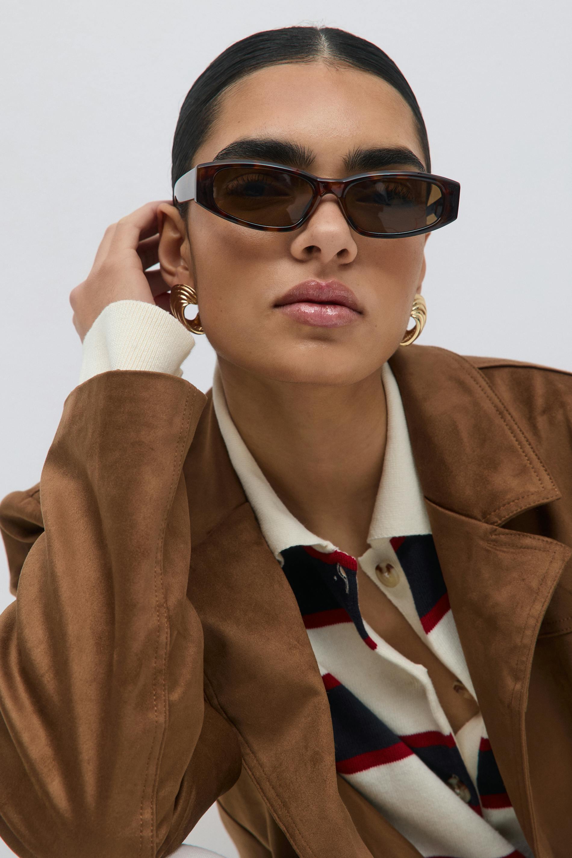 Gina Tricot – Slim sporty sunglasses – Sköldpaddsmönstrade solglasögon med sportig design. Solglasögonen är bruna och smala. – Brun – Dam- new