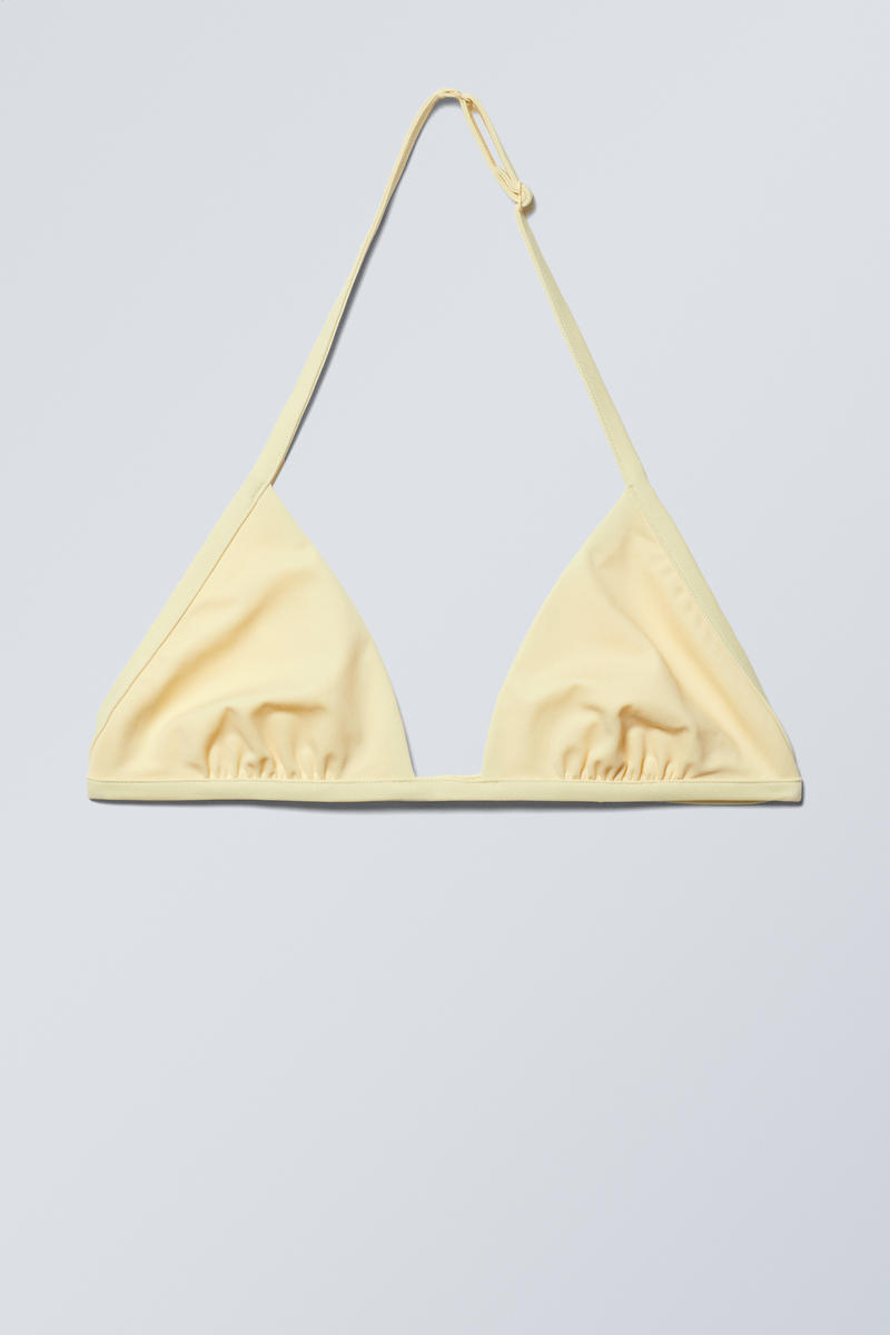 A classic halter neck triangle bikini top with a minimal design. Crafted from smooth, stretchy recycled polyamide, it features an adjustable halter strap with a scooped neckline, and a secure back buckle closure. Fully lined for a comfortable fit, with clean stitch detailing and elasticated edges for a streamlined finish.