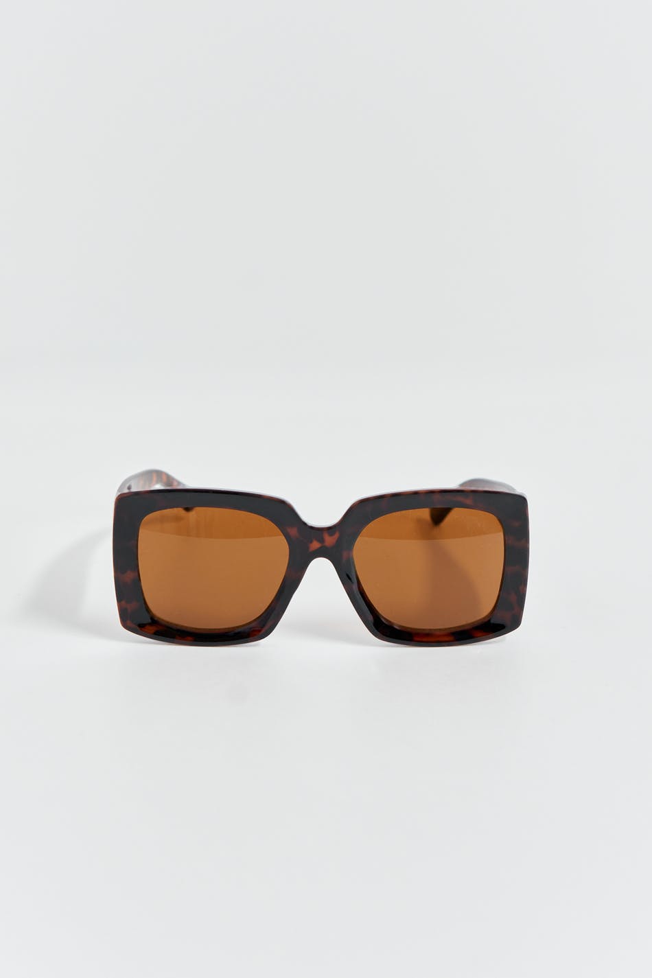 Stora solglasögon med chunky plastbågar i återvunnen plast. Solglasögonen är bruna och har tonade glas med ett UV400-skydd.