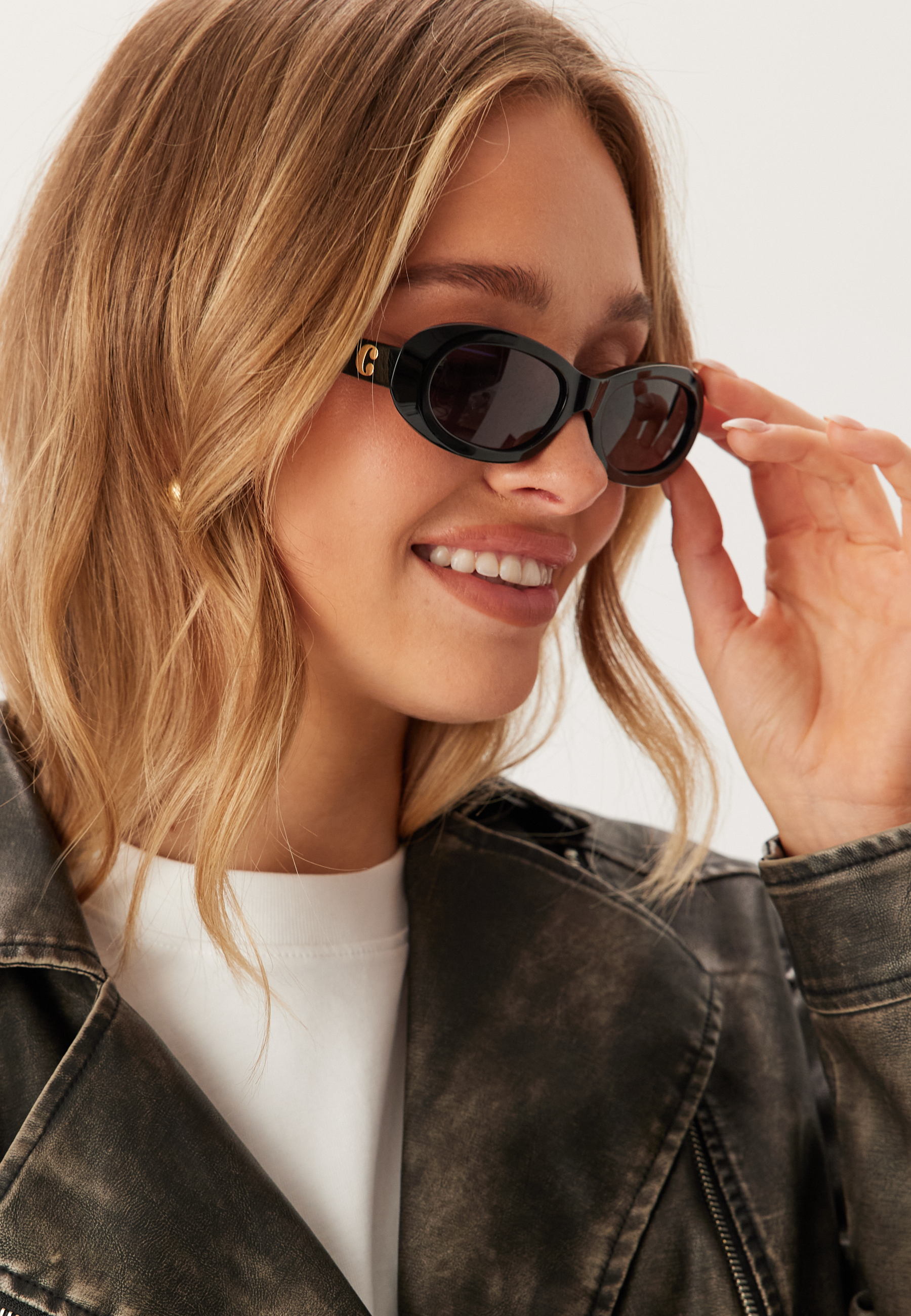 Solglasögon från Corlin Eyewear. – Guldfärgad logotyp på sidorna. – Medföljande fodral med logga. För godkänd retur krävs att solglasögonen returneras med original emballage, fodral och utan repor.