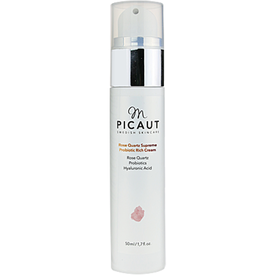 Avancerad probiotisk ansiktskräm med rosenkvarts och hyaluronsyra M Picaut Swedish Skincare Rose Quartz Supreme Probiotic Rich Cream representerar en revolution inom lyxig probiotisk hudvård, där nya generationens prebiotika, probiotika och postbiotika arbetar synergistiskt för att stärka hudens eget mikrobiom. Denna eleganta hyaluronsyra ansiktskräm anti-age innehåller lågmolekylär hyaluronsyra som stimulerar kollagen- och elastinproduktionen för en märkbart fastare och ungdomligare hud. Den exklusiva rosenkvarts ansiktskräm-formulan berikas med den lugnande kraften från halvädelstenen rosenkvarts, som balanserar och harmoniserar huden på djupet. Pentavitin skapar hudens naturliga fuktbalans och fyller effektivt ut fina linjer, medan den lyxiga texturen omsluter huden i en känsla av ren välbefinnande. Denna innovativa dag- och nattkräm är särskilt utvecklad för normal, känslig eller obalanserad hud som förtjänar den finaste omtanken, och är stolt vegansk i sin sammansättning. Vad som gör denna rosenkvarts-kräm extraordinär Avancerad probiotisk teknologi med prebiotika, probiotika och postbiotika som stärker hudens mikrobiom Lågmolekylär hyaluronsyra stimulerar kollagen och elastin för anti-age-effekt på djupet Äkta rosenkvarts-pulver lugnar, balanserar och harmoniserar huden Pentavitin skapar en långvarig fuktreserv som fyller ut fina linjer synbart Upplev kraften av svensk lyxig probiotisk hudvård med denna transformerande ansiktskräm. Upptäck M Picaut Rose Quartz Supreme redan idag.