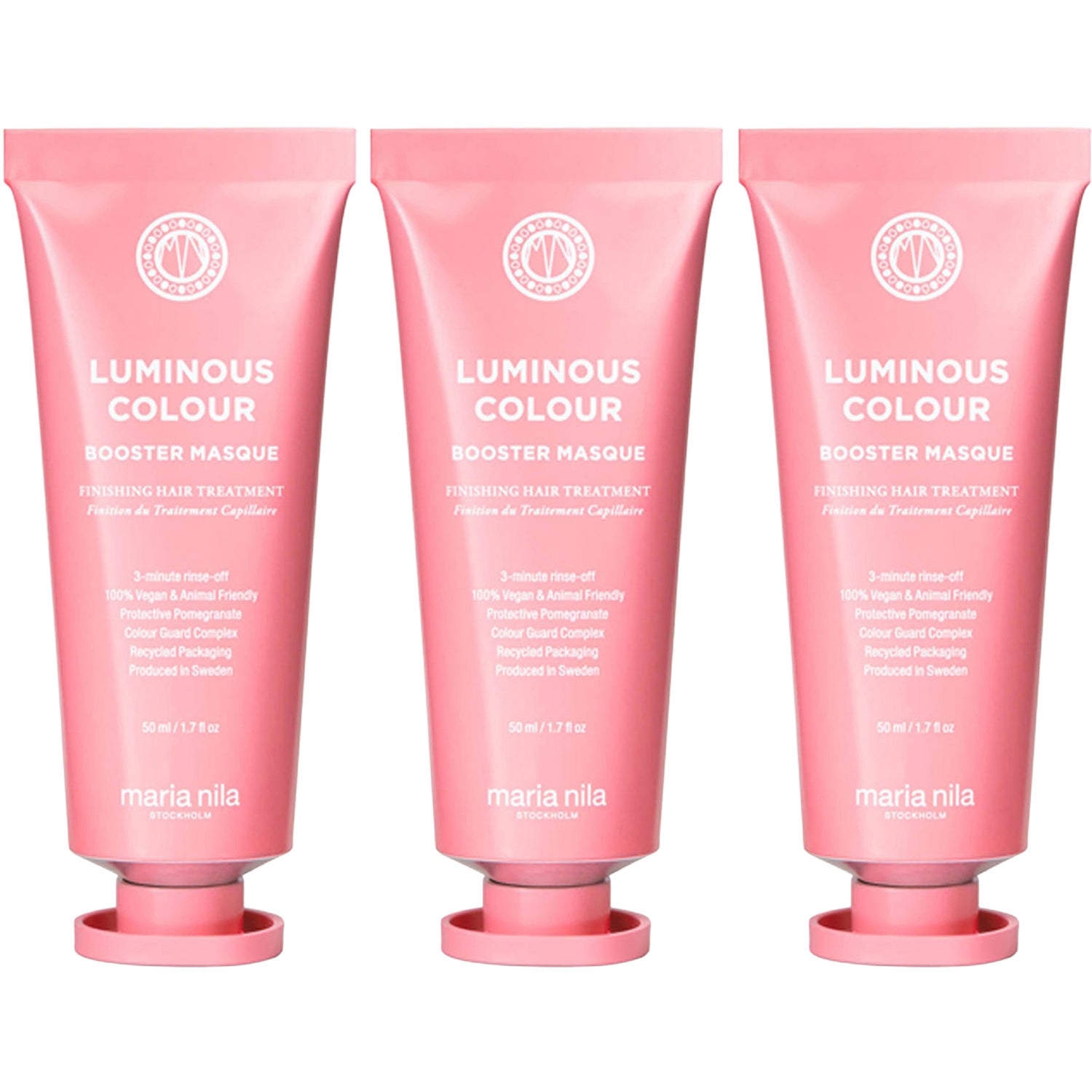 Intensiv färgboost och vårdande behandling på bara 3 minuter Maria Nila Luminous Colour Booster Masque är den ultimata lösningen för dig som vill ge ditt färgade hår extra lyster och skydd. Denna snabbverkande hårinpackning kombinerar djup näring med avancerat färgskydd genom granatäppleextrakt och Color Guard Complex. På bara 3 minuter får du salongsresultat som gör håret mjukt, glänsande och skyddat mot färgförlust från hårtvätt, styling och UV-strålar. Med sin praktiska 50ml-storlek ersätter den både balsam och traditionell hårinpackning – perfekt för hemmabruk och resor. Varför du kommer älska denna färgboostande hårinpackning Snabbverkande 3-minutersbehandling som ger djup näring och lyster Innehåller granatäppleextrakt och Color Guard Complex för optimalt färgskydd Ersätter både balsam och hårinpackning för enkel hårvårdsrutin Fräsch doft av äpple, björnbär och persika som förgyller upplevelsen Så får du ut det mesta av din färgboostande behandling Applicera på nytvättat hår, fokusera på längderna, låt verka i 3 minuter och skölj ur för omedelbart mjukt och glänsande resultat. Redo att ge ditt färgade hår den boost det förtjänar? Upptäck Maria Nila Luminous Colour Booster Masque redan idag!