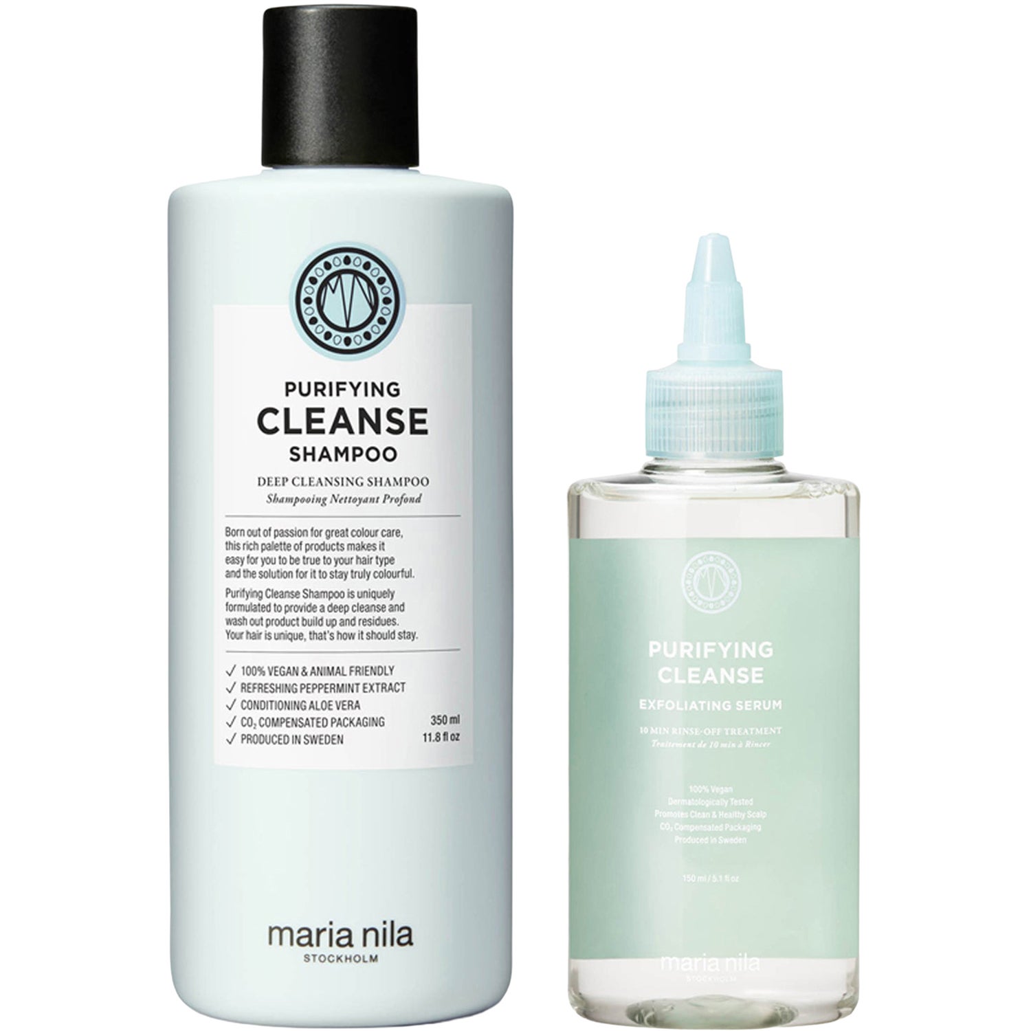 Djuprengörande hårvårdsritual för en frisk hårbotten Maria Nila Purifying Cleanse Duo ger ditt hår den ultimata nystarten med en kraftfull kombination av djuprengörande schampo och exfolierande serum. Detta innovativa set formulerat med AHA-syror, lugnande Aloe Vera och uppfriskande pepparmyntextrakt rengör effektivt bort produktrester och orenheter samtidigt som det återfuktar och balanserar hårbotten. Den sulfat-, paraben- och silikonfria formeln är perfekt för dig som vill skapa den bästa grunden för styling och behandlingar. Med sin friska, fruktiga doft av aprikos och persika förvandlar denna hårvårdsritual din dagliga rutin till en upplevelse som både renar och vitaliserar. Varför du kommer älska denna hårvårdsritual Djuprengör effektivt med AHA-syror som fungerar som mild peeling för hårbotten Lugnar och lindrar irritation med Aloe Vera-extrakt och kylande pepparmyntextrakt 100% vegan formula fri från sulfater, parabener och silikoner Skapar den perfekta grunden för styling och behandlingar som håller längre Så får du ut det mesta av din hårvårdsritual Applicera schampot i vått hår och massera försiktigt genom hår och hårbotten, låt verka i 1 minut för intensiv rengöring. Använd det exfolierande serumet på torr eller fuktig hårbotten, låt verka i 10 minuter och skölj ur. Redo att ge ditt hår en frisk nystart? Upptäck Maria Nila Purifying Cleanse Duo redan idag!