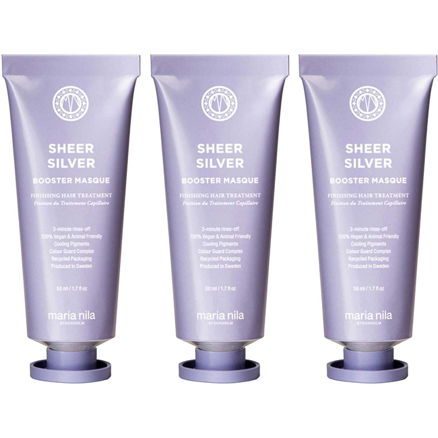 Professionell hårvård i resevänligt format Maria Nila Sheer Silver Trio ger dig tre kraftfulla 50ml behandlingar som neutraliserar gula toner och återställer glans i blont, grått och vitt hår. Denna snabbverkande hårinpackning med violetta pigment och närande björnbärsextrakt levererar salongsresultat på bara 3 minuter. Perfekt för resan eller som en uppgradering av din dagliga hårvårdsrutin – varje tube ersätter både balsam och traditionell hårinpackning. Därför kommer du älska denna trio Neutraliserar effektivt gula toner med violetta pigment Björnbärsextrakt ger djup återfuktning och naturlig glans Snabbverkande 3-minutersbehandling som sparar tid Resevänligt format – tre 50ml tuber för flexibel användning Så får du ut det mesta av din Sheer Silver behandling Applicera på nytvättat hår, fokusera på längderna och låt verka i 3 minuter innan du sköljer ur. En smart investering för vacker, tonbalanserad hårvård året runt. Upptäck Maria Nila Sheer Silver Trio redan idag!