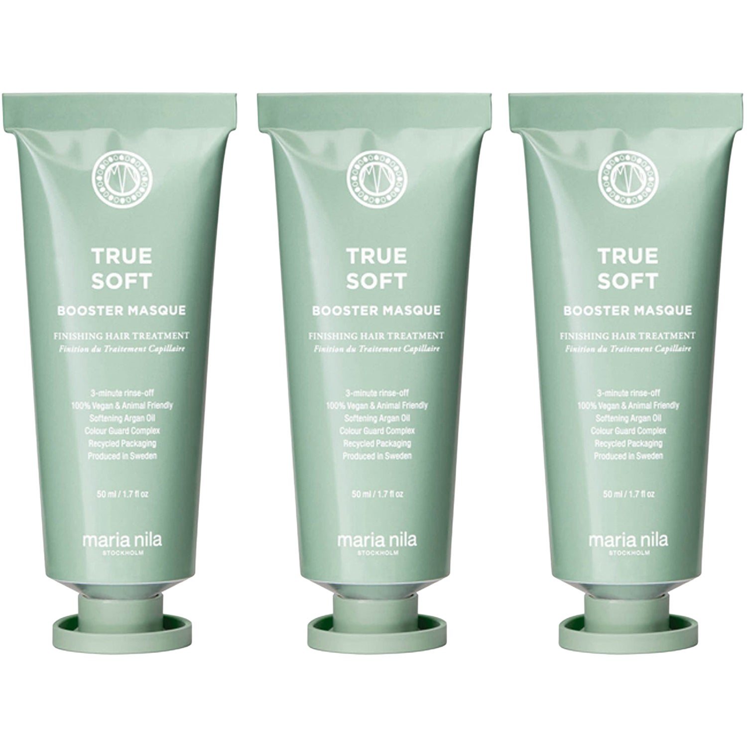 Intensiv hårvård på bara 3 minuter – perfekt för resan Maria Nila True Soft Booster Masque är den ultimata lösningen för dig som vill ha salongsresultat utan att kompromissa med tiden. Denna snabbverkande hårinpackning levererar djup näring på bara tre minuter och gör ditt hår otroligt mjukt och glänsande. Med närande arganolja och Color Guard Complex som mjukgör naturligt torrt och frissigt hår, ersätter denna smarta behandling både balsam och traditionell hårinpackning. Det praktiska trioformatet med tre 50ml-tuber gör den perfekt för resan eller för att alltid ha en reserv hemma. Varför du kommer älska denna snabba hårinpackning Ger intensiv näring och mjukhet på bara 3 minuter Innehåller arganolja som återfuktar och ger naturlig glans Color Guard Complex skyddar och mjukgör torrt, frissigt hår Ersätter både balsam och hårinpackning för enkel hårvårdsrutin Så får du ut det mesta av din hårinpackning Schamponera håret och skölj ur, applicera True Soft Booster Masque med fokus på längderna, låt verka i 3 minuter och skölj sedan ur grundligt. Upptäck kraften i professionell hårvård hemma med den härliga blommiga doften av liljor, jasmin och ros. Prova Maria Nila True Soft Booster Masque redan idag!