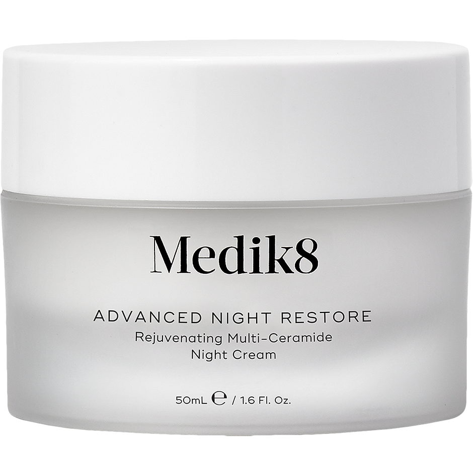 Avancerad nattkräm med ceramider för synligt förnyad hud Medik8 Advanced Night Restore är en elegant återfuktande anti-aging nattkräm som transformerar din hudvårdsritual till en lyxig upplevelse. Denna innovativa Medik8 ceramider kräm kombinerar avancerad vetenskap med hudens naturliga förnyelsecykel för att leverera exceptionella resultat medan du sover. Den unika Midnight Recovery Complex-teknologin arbetar intensivt under natten med kraftfulla antioxidanter som skyddar mot fria radikaler och främjar synligt yngre hud. Ceramidkomplexet, bestående av fem olika ceramider inklusive Ceramide NP och AP, återställer hudens naturliga fuktbarriär och stärker dess försvar mot yttre påverkan. Berikad med skavlan (squalane) och peptider ger denna nattkräm djup återfuktning samtidigt som den minskar synliga tecken på åldrande som rynkor och förlust av fasthet. Resultatet är en märkbart slätare, fastare och mer ungdomlig hud som strålar av vitalitet varje morgon. Fördelarna med denna avancerade nattkräm Innehåller fem olika ceramider som återställer och stärker hudens naturliga skyddsbarriär Midnight Recovery Complex ger kraftfullt antioxidativt skydd under nattens förnyelse Peptider och skavlan arbetar tillsammans för att minska rynkor och öka hudens fasthet Rik formula som ger intensiv återfuktning utan att kännas tung på huden Så får du ut det mesta av din nattkräm Applicera varje kväll efter rengöring med den medföljande spateln på ansikte, hals och dekolletage, undvik ögonområdet och massera in med uppåtgående rörelser. Upplev kraften i avancerad hudvetenskap och låt din hud förnya sig medan du vilar. Upptäck Medik8 Advanced Night Restore idag.