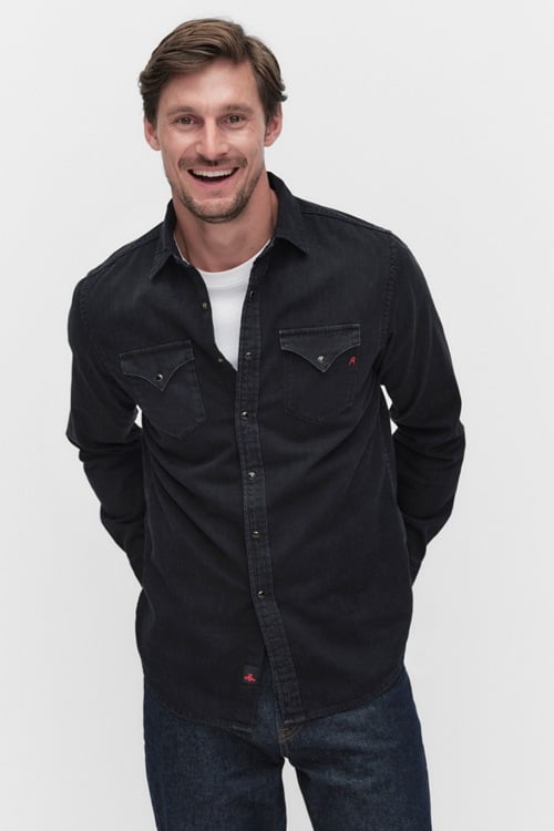 Denna denimskjorta från Replay är en modern klassiker med tydliga influenser från workwear-stilen. Skjortan har dubbla bröstfickor med lock och tryckknappar för en praktisk och autentisk känsla. Den raka passformen och den tvättade svarta denimkvaliteten ger en avslappnad men stilren look som fungerar lika bra öppen över en t-shirt som knäppt till chinos eller jeans.