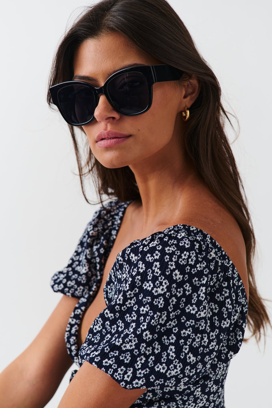 Stora solglasögon med chunky plastbågar i återvunnen plast. Solglasögonen är svarta och har tonade glas med ett UV400-skydd.