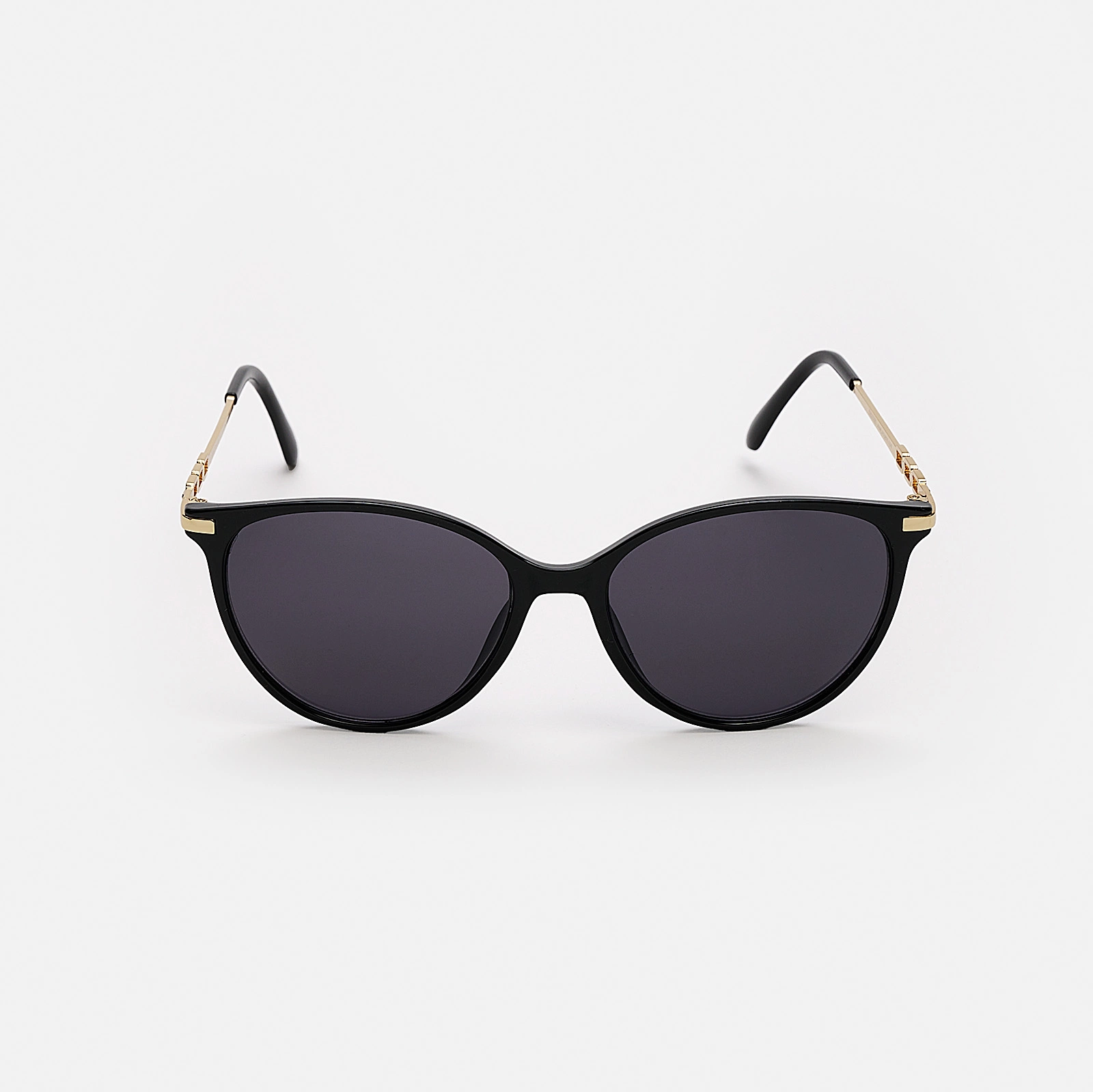 Solglasögon i en Cat Eye-modell. Dessa solglasögon har svart glas, svarta plastramar och guldfärgade skalmar i metall. ✓ UV400-skyddade Solglasögon är den bästa accessoaren en solig dag. De skyddar mot solen samtidigt som solglasögonen förstärker din outfit. Alla våra solglasögon har UV400-skydd som innebär att dina ögon skyddas av de allra starkaste solstrålarna.