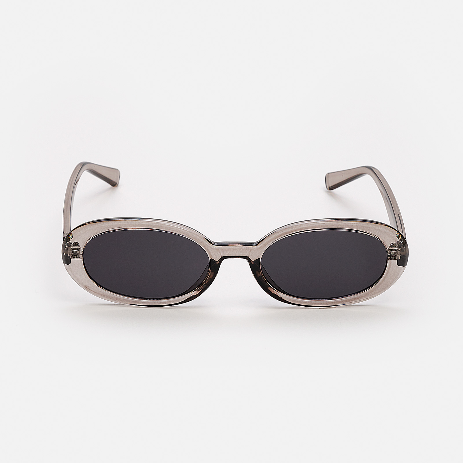 Solglasögon i en oval modell. Dessa solglasögon har svart glas och grå transparenta plastramar. ✓ UV400-skyddade Solglasögon är den bästa accessoaren en solig dag. De skyddar mot solen samtidigt som solglasögonen förstärker din outfit. Alla våra solglasögon har UV400-skydd som innebär att dina ögon skyddas av de allra starkaste solstrålarna.