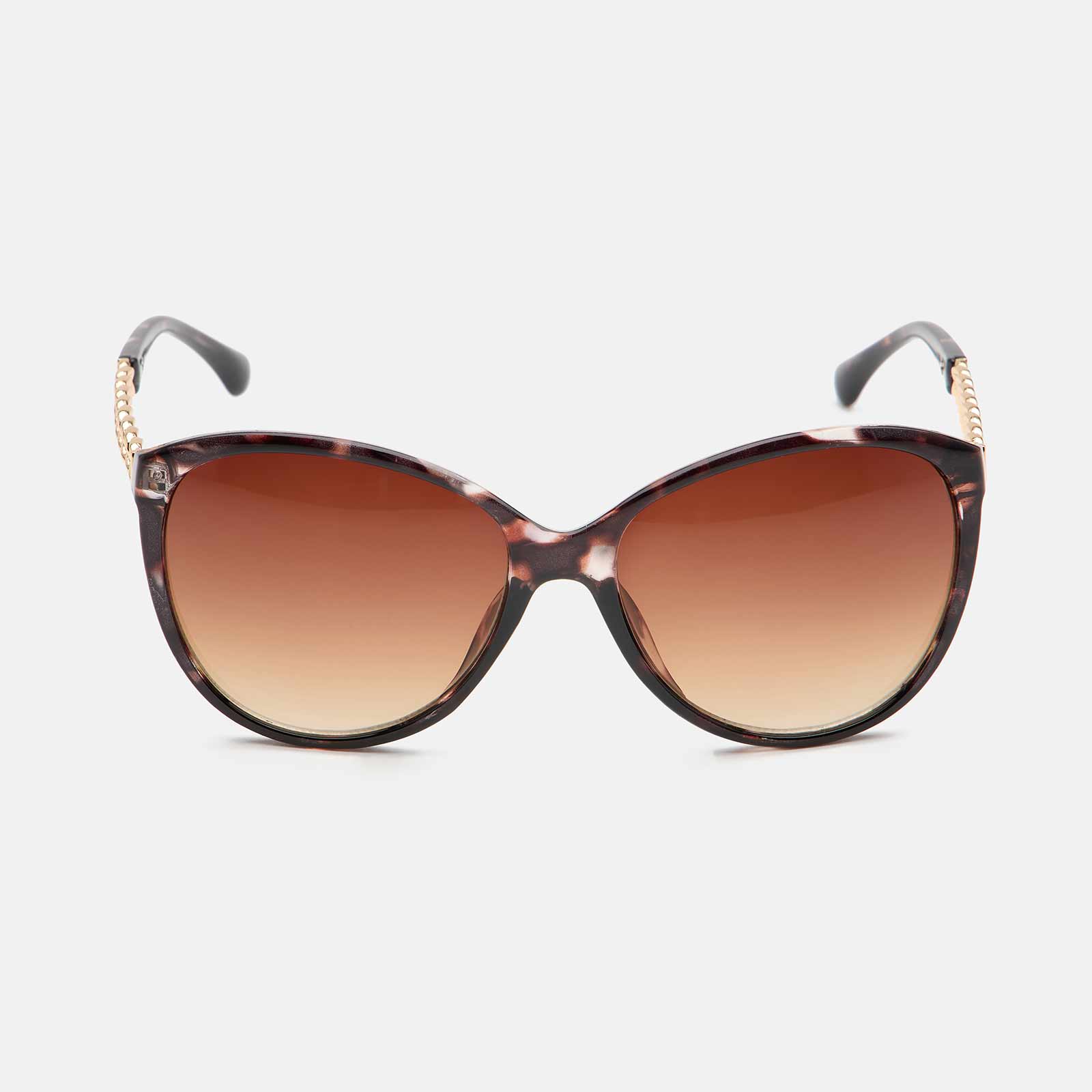 Snygga bruna solglasögon i Cat Eye-modell. Skalmarna är i form av guldfärgade kedjor. ✓ UV400-skyddade Solglasögon är den bästa accessoaren en solig dag. De skyddar mot solen samtidigt som solglasögonen förstärker din outfit. Alla våra solglasögon har UV400-skydd som innebär att dina ögon skyddas av de allra starkaste solstrålarna.