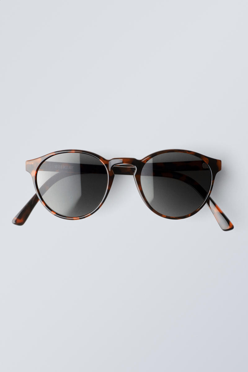 Ett par solglasögon med en klassisk tunn båge tillverkade i stadig 75 % återvunnen PET-blandning. De har gråtonade glas och bekväma skalmar för långvarig komfort.