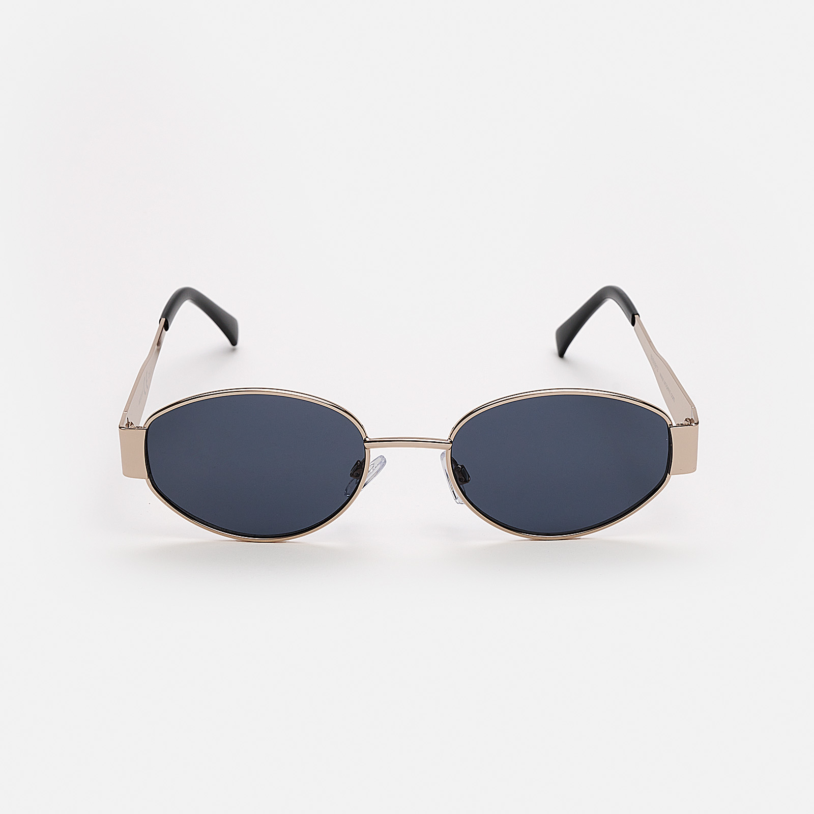 Solglasögon i en oval modell som passar både dam och herr. Dessa solglasögon har svarta glas och guldfärgade metallbågar. ✓ UV400-skyddade Solglasögon är den bästa accessoaren en solig dag. De skyddar mot solen samtidigt som solglasögonen förstärker din outfit. Alla våra solglasögon har UV400-skydd som innebär att dina ögon skyddas av de allra starkaste solstrålarna.