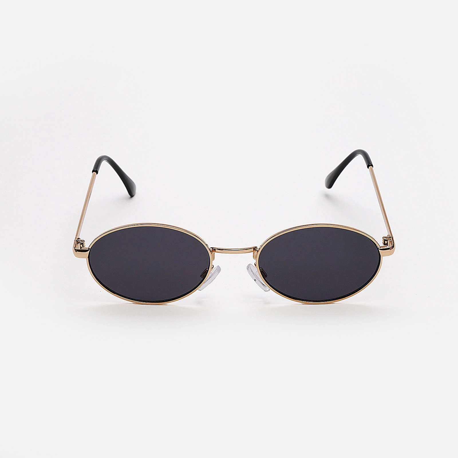 Solglasögon i en oval modell som passar både dam och herr. Dessa solglasögon har svart glas och guldfärgade metallbågar. ✓ UV400-skyddade Solglasögon är den bästa accessoaren en solig dag. De skyddar mot solen samtidigt som solglasögonen förstärker din outfit. Alla våra solglasögon har UV400-skydd som innebär att dina ögon skyddas av de allra starkaste solstrålarna.