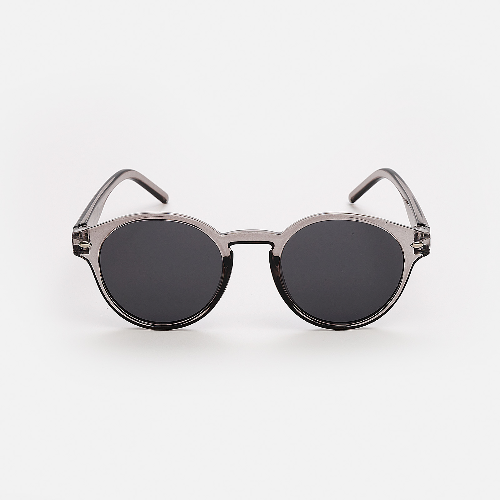 Solglasögon i en rund modell som passar både dam och herr. Dessa solglasögon har svart glas och grå transparenta plastbågar. ✓ UV400-skyddade Solglasögon är den bästa accessoaren en solig dag. De skyddar mot solen samtidigt som solglasögonen förstärker din outfit. Alla våra solglasögon har UV400-skydd som innebär att dina ögon skyddas av de allra starkaste solstrålarna.